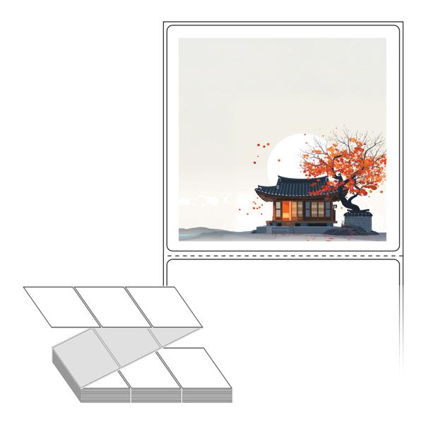 롤라벨보다 편리한 제트라벨, 규격코드: ZL10098, 디자인코드: DA1348(감나무가 있는 기와집2), 100 x 98 (mm)
