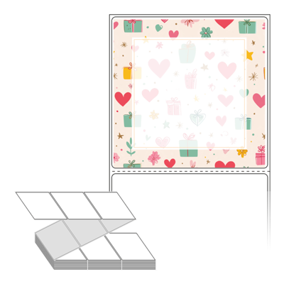 롤라벨보다 편리한 제트라벨, 규격코드: ZL10098, 디자인코드: DA1393(선물 하트 포장지), 100 x 98 (mm)