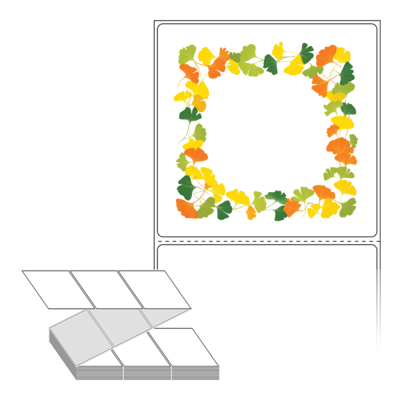 롤라벨보다 편리한 제트라벨, 규격코드: ZL10098, 디자인코드: DA1402(은행잎 프레임), 100 x 98 (mm)