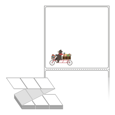 롤라벨보다 편리한 제트라벨, 규격코드: ZL10098, 디자인코드: DX018(선물 배달곰), 100 x 98 (mm)