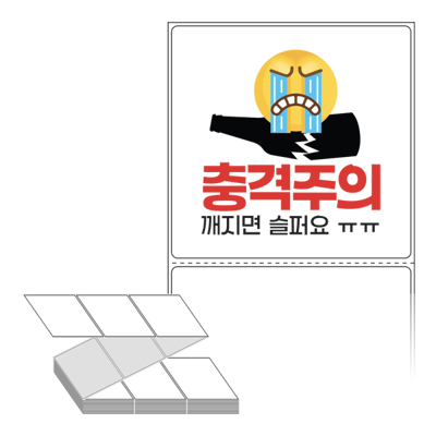 롤라벨보다 편리한 제트라벨, 규격코드: ZL10098, 디자인코드: FA134(충격주의 깨지면 슬퍼요 ㅠㅠ), 100 x 98 (mm)