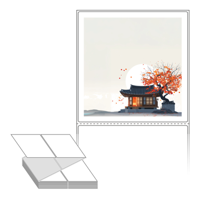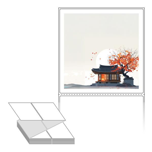 롤라벨보다 편리한 제트라벨, 규격코드: ZL110111, 디자인코드: DA1348(감나무가 있는 기와집2), 110 x 111 (mm)