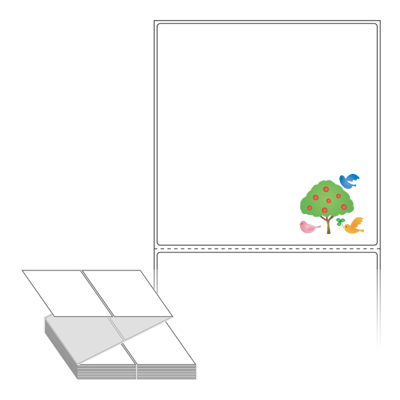 롤라벨보다 편리한 제트라벨, 규격코드: ZL110111, 디자인코드: DV057(나무와 행복한 새들), 110 x 111 (mm)