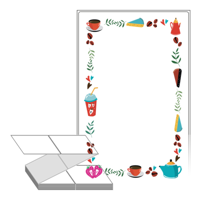 롤라벨보다 편리한 제트라벨, 규격코드: ZL110175, 디자인코드: DA101(커피와 디저트), 110 x 174.8 (mm)