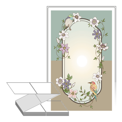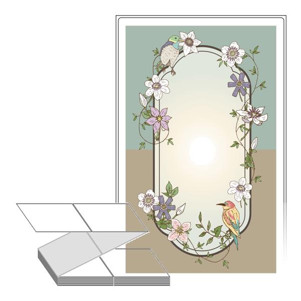 롤라벨보다 편리한 제트라벨, 규격코드: ZL110175, 디자인코드: DA995(새와 꽃 그리고 거울), 110 x 174.8 (mm)
