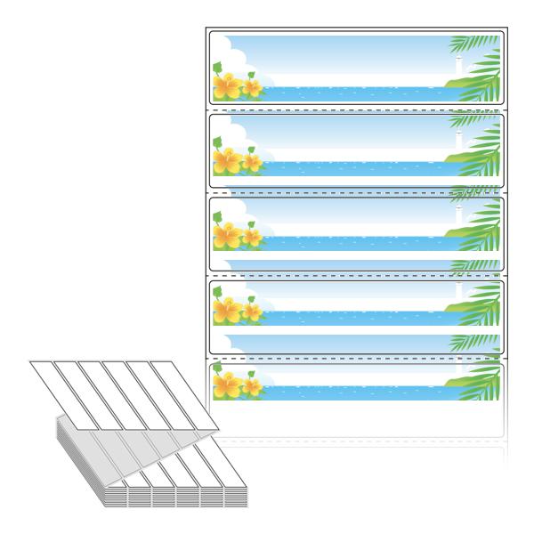 텍스트, 이미지, 도형, 바코드 등을 쉽게 출력 할 수 있으며 엑셀파일 등의 연동도 가능합니다. 라벨 모양대로 이미 칼선이 있기 때문에 출력 후 바로 떼어서 사용 하시면 됩니다.