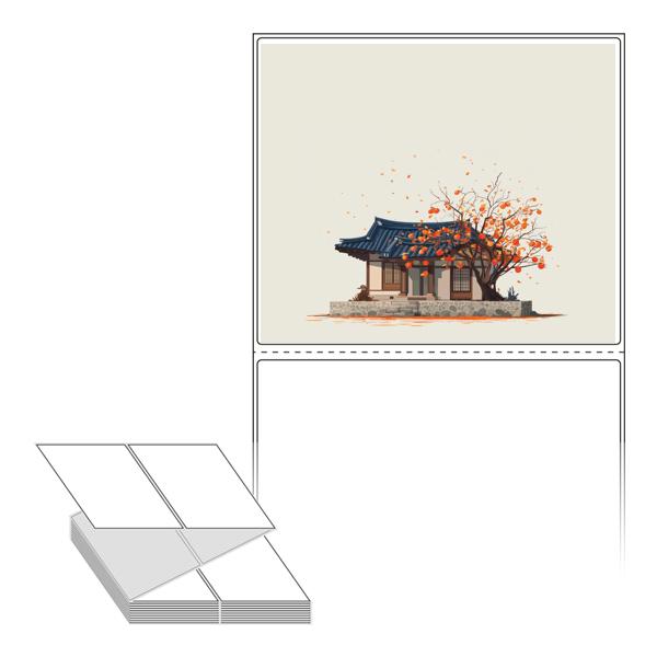 롤라벨보다 편리한 제트라벨, 규격코드: ZL130110, 디자인코드: DA1347(감나무가 있는 기와집), 130 x 110 (mm)