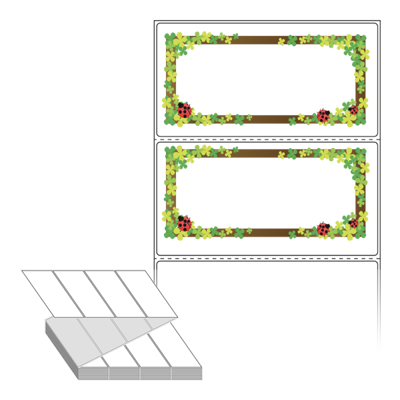 디자인 라벨/디자인 태그는 칼선만 들어가 있는 기존 제품과 달리, 프레임, 캐릭터, 배경 등이 특수 장비를 통해 뛰어난 품질로 미리 인쇄가 되어 있는 제품입니다. 인쇄가 되어 있지 않은 부분만 디자인 해서 프린터에서 출력하여 사용 하시면 됩니다.