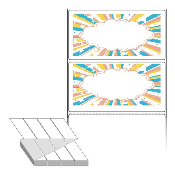 텍스트, 이미지, 도형, 바코드 등을 쉽게 출력 할 수 있으며 엑셀파일 등의 연동도 가능합니다. 라벨 모양대로 이미 칼선이 있기 때문에 출력 후 바로 떼어서 사용 하시면 됩니다.
