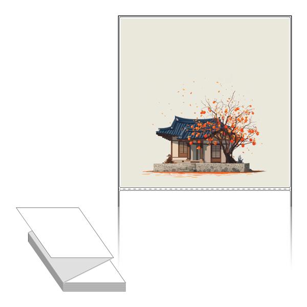 롤라벨보다 편리한 제트라벨, 규격코드: ZL200200, 디자인코드: DA1347(감나무가 있는 기와집), 200 x 200 (mm)