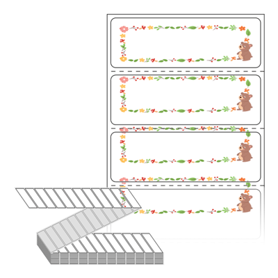 디자인 라벨/디자인 태그는 칼선만 들어가 있는 기존 제품과 달리, 프레임, 캐릭터, 배경 등이 특수 장비를 통해 뛰어난 품질로 미리 인쇄가 되어 있는 제품입니다. 인쇄가 되어 있지 않은 부분만 디자인 해서 프린터에서 출력하여 사용 하시면 됩니다.