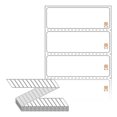 텍스트, 이미지, 도형, 바코드 등을 쉽게 출력 할 수 있으며 엑셀파일 등의 연동도 가능합니다. 라벨 모양대로 이미 칼선이 있기 때문에 출력 후 바로 떼어서 사용 하시면 됩니다.
