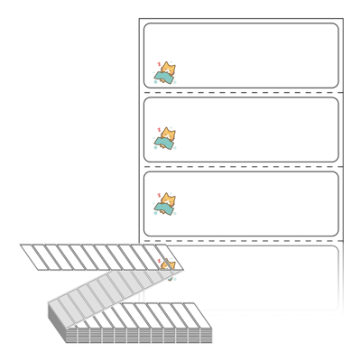 텍스트, 이미지, 도형, 바코드 등을 쉽게 출력 할 수 있으며 엑셀파일 등의 연동도 가능합니다. 라벨 모양대로 이미 칼선이 있기 때문에 출력 후 바로 떼어서 사용 하시면 됩니다.