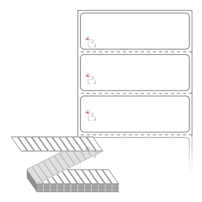 텍스트, 이미지, 도형, 바코드 등을 쉽게 출력 할 수 있으며 엑셀파일 등의 연동도 가능합니다. 라벨 모양대로 이미 칼선이 있기 때문에 출력 후 바로 떼어서 사용 하시면 됩니다.