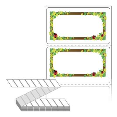 디자인 라벨/디자인 태그는 칼선만 들어가 있는 기존 제품과 달리, 프레임, 캐릭터, 배경 등이 특수 장비를 통해 뛰어난 품질로 미리 인쇄가 되어 있는 제품입니다. 인쇄가 되어 있지 않은 부분만 디자인 해서 프린터에서 출력하여 사용 하시면 됩니다.