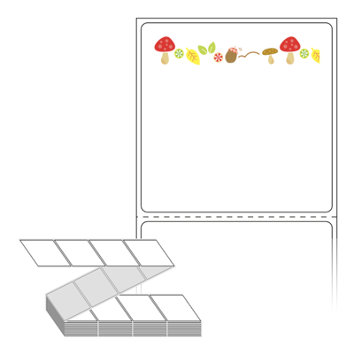롤라벨보다 편리한 제트라벨, 규격코드: ZL6061, 디자인코드: DN092(버섯, 풀잎, 도토리, 가을), 60 x 60.5 (mm)