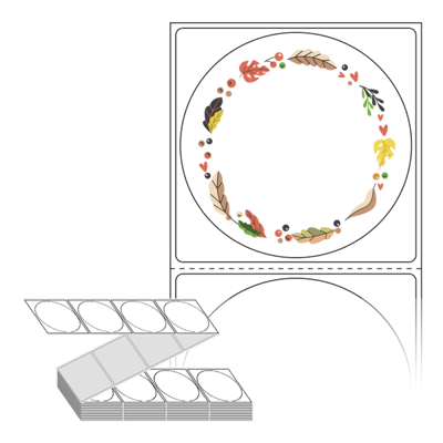 텍스트, 이미지, 도형, 바코드 등을 쉽게 출력 할 수 있으며 엑셀파일 등의 연동도 가능합니다. 라벨 모양대로 이미 칼선이 있기 때문에 출력 후 바로 떼어서 사용 하시면 됩니다.
