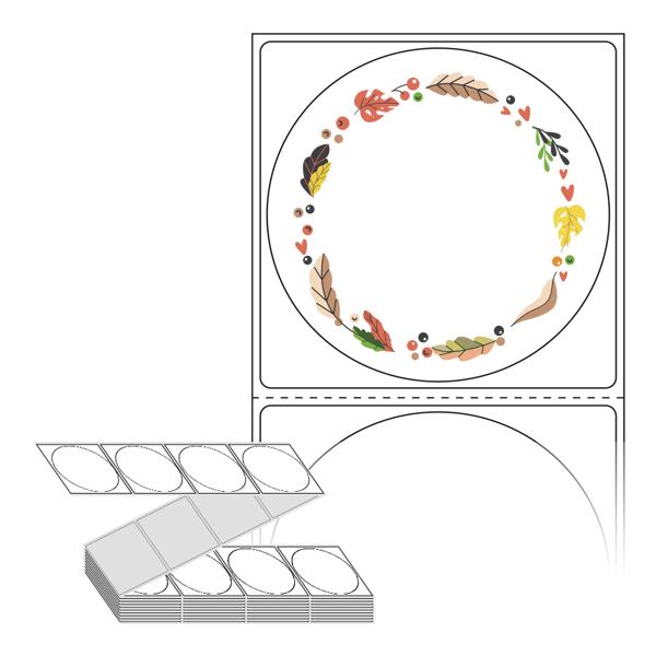 롤라벨보다 편리한 제트라벨, 규격코드: ZL6464, 디자인코드: DA040(알록달록 가을 낙엽), Φ64 (mm) 원형