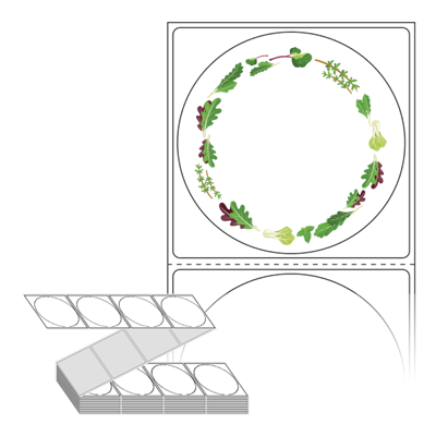 롤라벨보다 편리한 제트라벨, 규격코드: ZL6464, 디자인코드: DA049(건강한 야채 프레임), Φ64 (mm) 원형