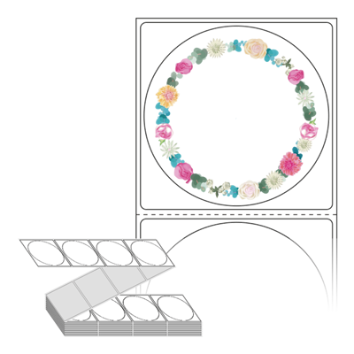 롤라벨보다 편리한 제트라벨, 규격코드: ZL6464, 디자인코드: DA095(플라워 프레임), Φ64 (mm) 원형