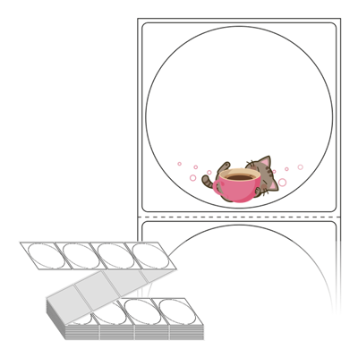 텍스트, 이미지, 도형, 바코드 등을 쉽게 출력 할 수 있으며 엑셀파일 등의 연동도 가능합니다. 라벨 모양대로 이미 칼선이 있기 때문에 출력 후 바로 떼어서 사용 하시면 됩니다.