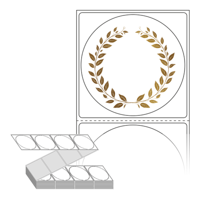 롤라벨보다 편리한 제트라벨, 규격코드: ZL6464, 디자인코드: DA1310(황금 월계관), Φ64 (mm) 원형