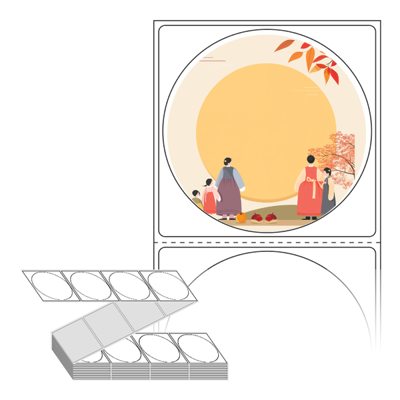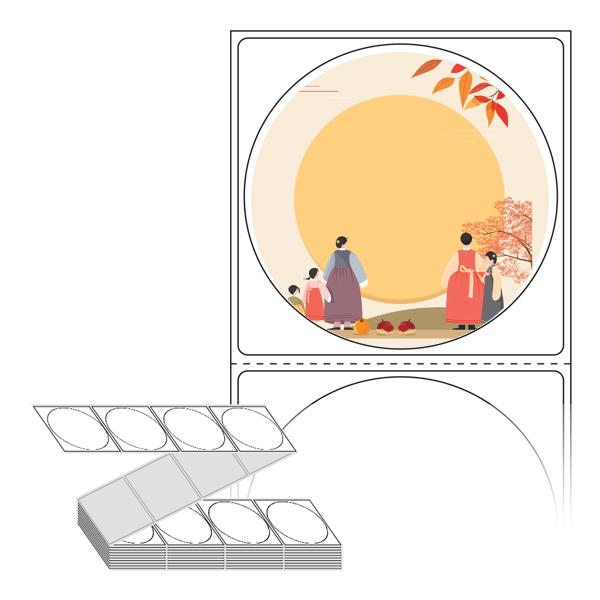 롤라벨보다 편리한 제트라벨, 규격코드: ZL6464, 디자인코드: DA1338(따뜻한 추석 풍경), Φ64 (mm) 원형