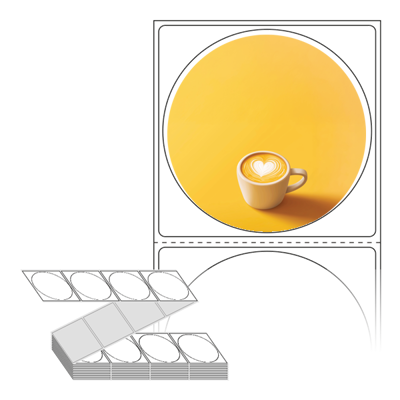 롤라벨보다 편리한 제트라벨, 규격코드: ZL6464, 디자인코드: DA1391(라떼 스티커), Φ64 (mm) 원형