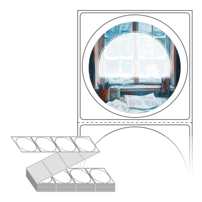 롤라벨보다 편리한 제트라벨, 규격코드: ZL6464, 디자인코드: DA1499(겨울, 작가의 책상에서), Φ64 (mm) 원형