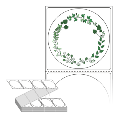 롤라벨보다 편리한 제트라벨, 규격코드: ZL6464, 디자인코드: DA214(푸른잎 써클 프레임), Φ64 (mm) 원형