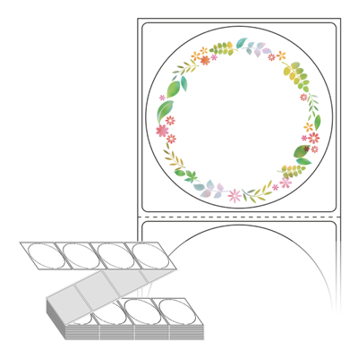 텍스트, 이미지, 도형, 바코드 등을 쉽게 출력 할 수 있으며 엑셀파일 등의 연동도 가능합니다. 라벨 모양대로 이미 칼선이 있기 때문에 출력 후 바로 떼어서 사용 하시면 됩니다.