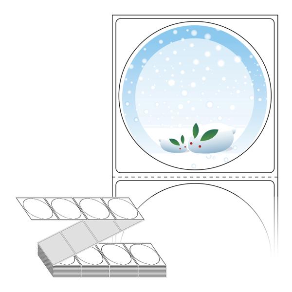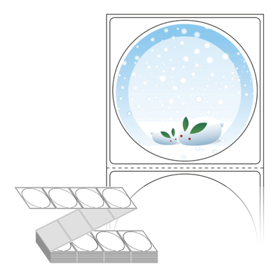 롤라벨보다 편리한 제트라벨, 규격코드: ZL6464, 디자인코드: DA292(눈토끼(스노우 래빗)), Φ64 (mm) 원형