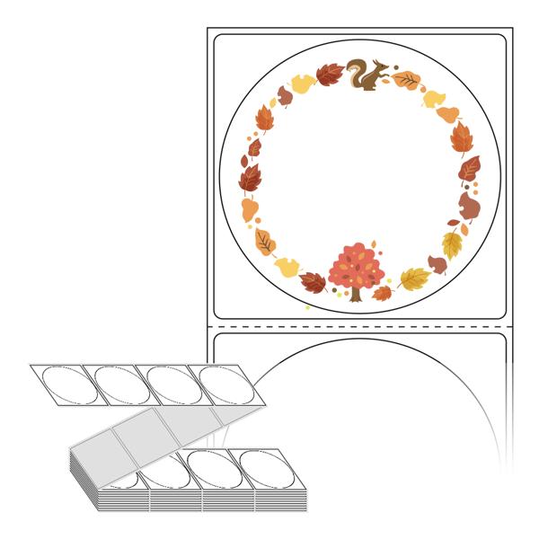롤라벨보다 편리한 제트라벨, 규격코드: ZL6464, 디자인코드: DA377(어텀 리브즈), Φ64 (mm) 원형