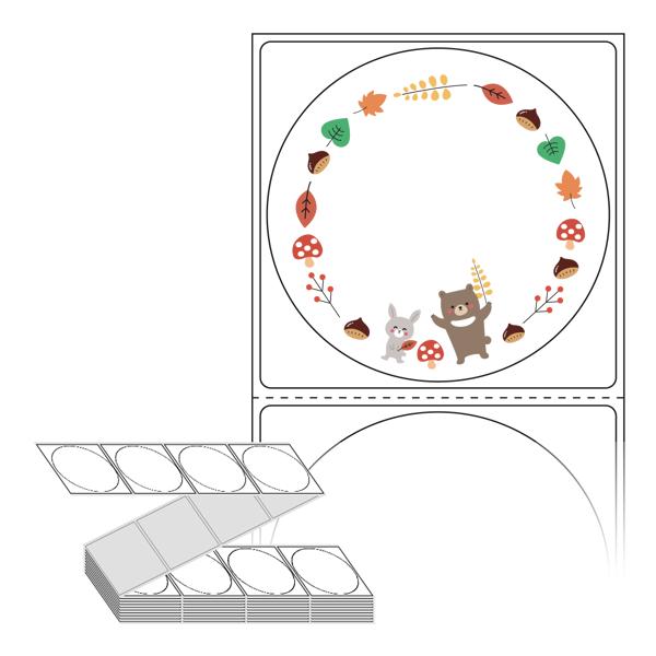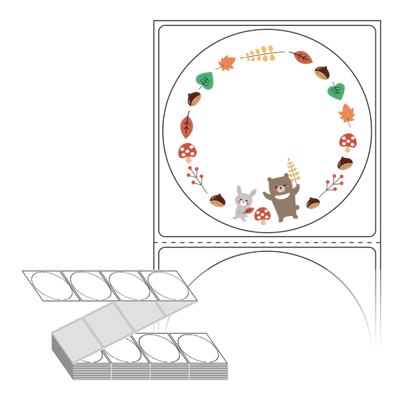 롤라벨보다 편리한 제트라벨, 규격코드: ZL6464, 디자인코드: DA390(숲속 친구들의 가을 잔치), Φ64 (mm) 원형