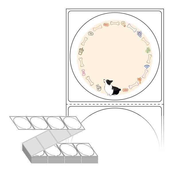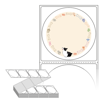 롤라벨보다 편리한 제트라벨, 규격코드: ZL6464, 디자인코드: DA405(같이 산책나가요!), Φ64 (mm) 원형