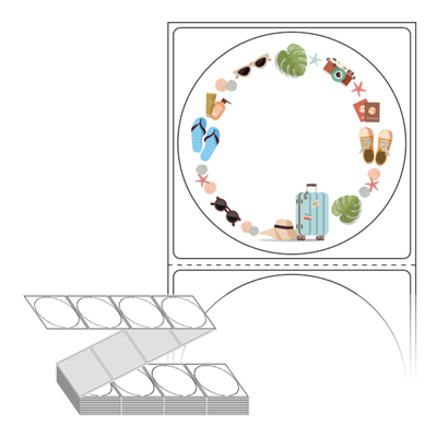 텍스트, 이미지, 도형, 바코드 등을 쉽게 출력 할 수 있으며 엑셀파일 등의 연동도 가능합니다. 라벨 모양대로 이미 칼선이 있기 때문에 출력 후 바로 떼어서 사용 하시면 됩니다.
