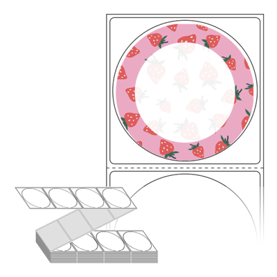 롤라벨보다 편리한 제트라벨, 규격코드: ZL6464, 디자인코드: DA430(딸기가 좋아? 딸기가 좋아!), Φ64 (mm) 원형