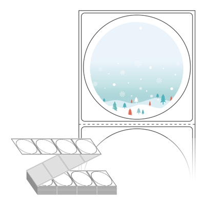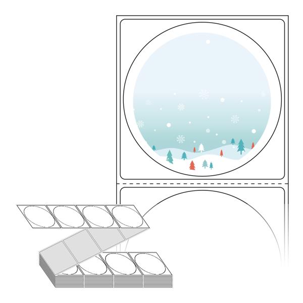 롤라벨보다 편리한 제트라벨, 규격코드: ZL6464, 디자인코드: DA456(눈내리는 겨울산), Φ64 (mm) 원형