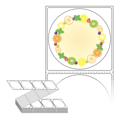 텍스트, 이미지, 도형, 바코드 등을 쉽게 출력 할 수 있으며 엑셀파일 등의 연동도 가능합니다. 라벨 모양대로 이미 칼선이 있기 때문에 출력 후 바로 떼어서 사용 하시면 됩니다.
