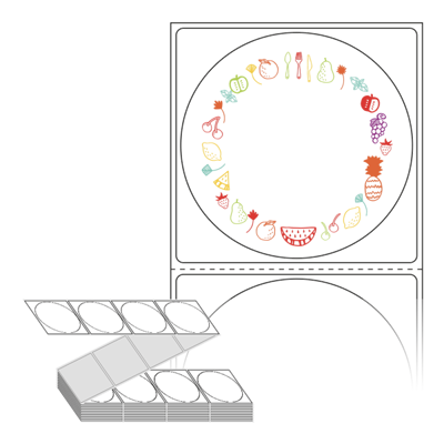 롤라벨보다 편리한 제트라벨, 규격코드: ZL6464, 디자인코드: DA668(과일바구니), Φ64 (mm) 원형