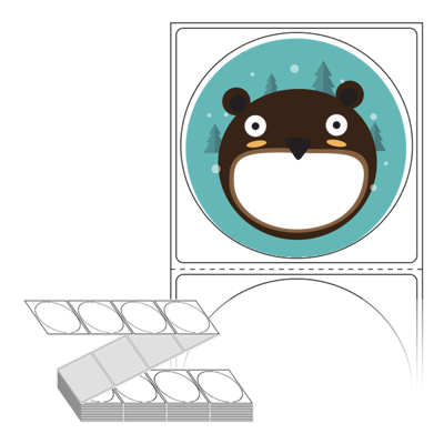 롤라벨보다 편리한 제트라벨, 규격코드: ZL6464, 디자인코드: DA940(거기~ 곰 짝마라!), Φ64 (mm) 원형