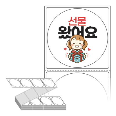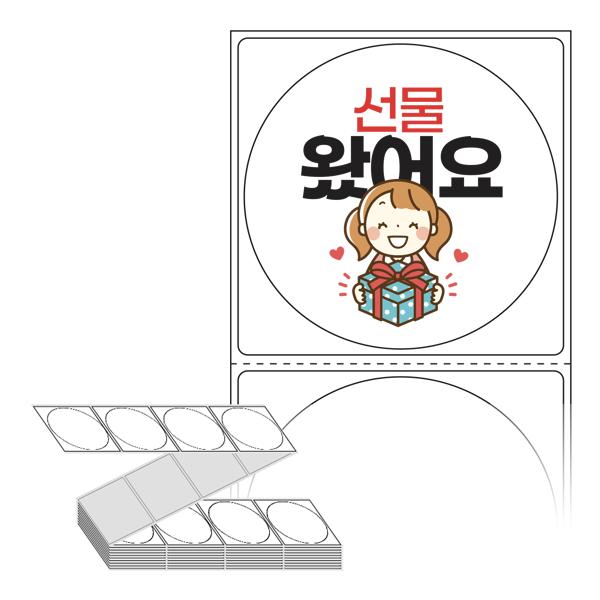 롤라벨보다 편리한 제트라벨, 규격코드: ZL6464, 디자인코드: FA021(선물 왔어요(증정품 스티커)), Φ64 (mm) 원형