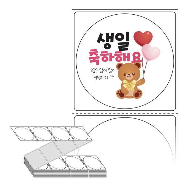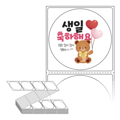 롤라벨보다 편리한 제트라벨, 규격코드: ZL6464, 디자인코드: FA025(생일 축하해요), Φ64 (mm) 원형