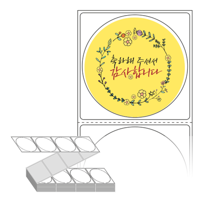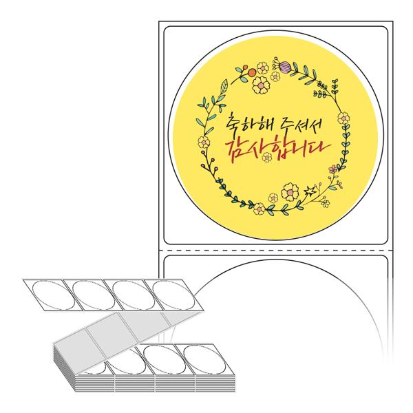 롤라벨보다 편리한 제트라벨, 규격코드: ZL6464, 디자인코드: FA056(축하해 주셔서 감사합니다), Φ64 (mm) 원형