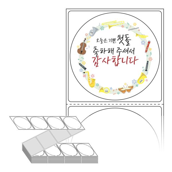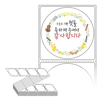 롤라벨보다 편리한 제트라벨, 규격코드: ZL6464, 디자인코드: FA060(첫돌 축하해 주셔서 감사합니다), Φ64 (mm) 원형