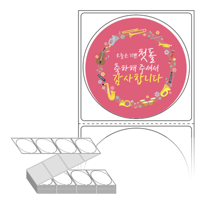 롤라벨보다 편리한 제트라벨, 규격코드: ZL6464, 디자인코드: FA061(첫돌 축하해 주셔서 감사합니다), Φ64 (mm) 원형