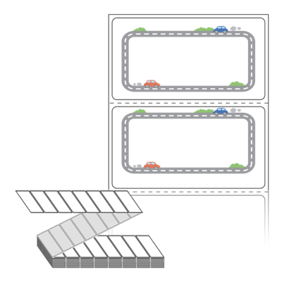 텍스트, 이미지, 도형, 바코드 등을 쉽게 출력 할 수 있으며 엑셀파일 등의 연동도 가능합니다. 라벨 모양대로 이미 칼선이 있기 때문에 출력 후 바로 떼어서 사용 하시면 됩니다.