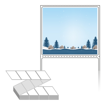 롤라벨보다 편리한 제트라벨, 규격코드: ZL7061, 디자인코드: DA210(눈내린 겨울의 숲속 마을), 70 x 60.5 (mm)