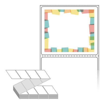 텍스트, 이미지, 도형, 바코드 등을 쉽게 출력 할 수 있으며 엑셀파일 등의 연동도 가능합니다. 라벨 모양대로 이미 칼선이 있기 때문에 출력 후 바로 떼어서 사용 하시면 됩니다.
