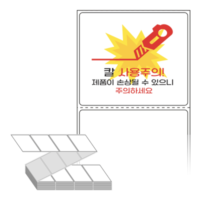 텍스트, 이미지, 도형, 바코드 등을 쉽게 출력 할 수 있으며 엑셀파일 등의 연동도 가능합니다. 라벨 모양대로 이미 칼선이 있기 때문에 출력 후 바로 떼어서 사용 하시면 됩니다.